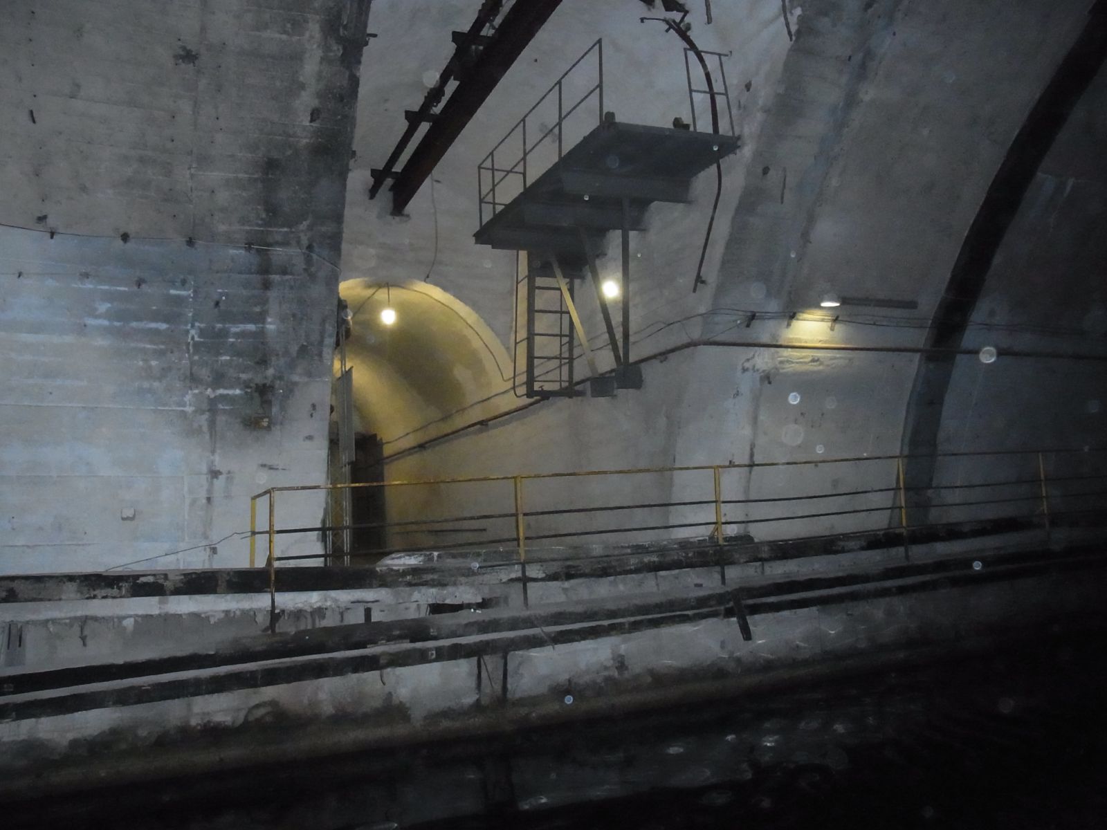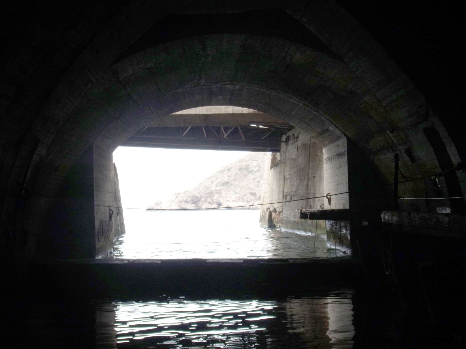 den Tunnel und die Basis auf der Seite der Bucht (Foto links).