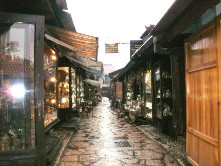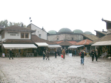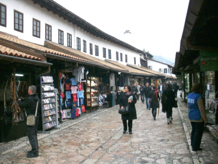 In den Nebenstrassen der Baščaršija (rechtes Bild) herrscht