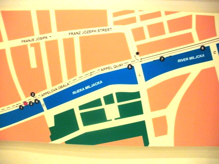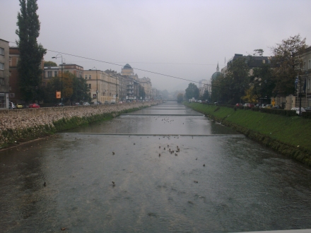 über die Miljacka (Миљацка). Der Fluss verläuft