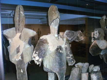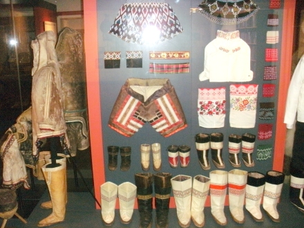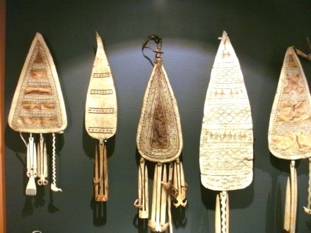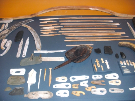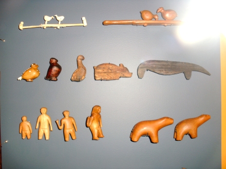 Das Gerippe eines Umiak (Foto links) und Schmuck der Inuitfrauen (Foto