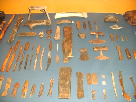 ortsfest. Kämme und Kopfschmuck (Foto links). Messer und andere Werkzeuge.