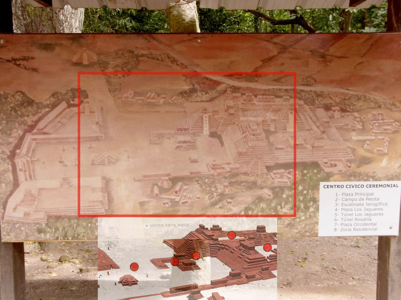 rechts) aus dem Jahr 731 an der Ostseite der Gran Plaza