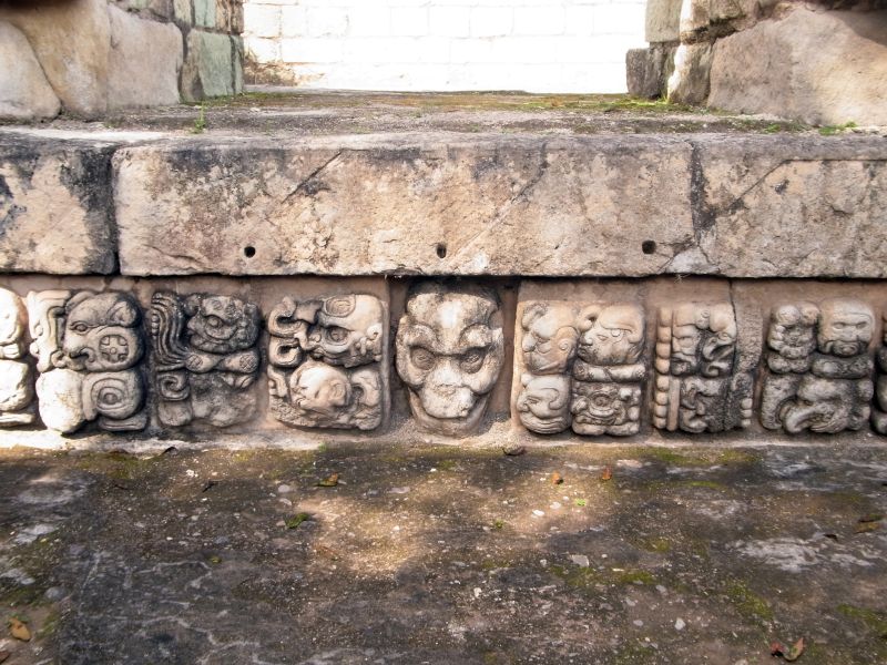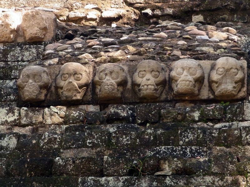 steinernen Totenschädel im unteren Abschnitt des Tempels 16