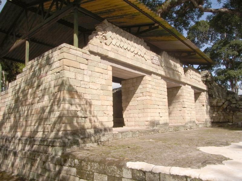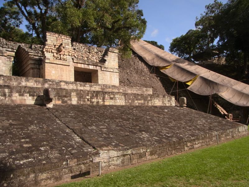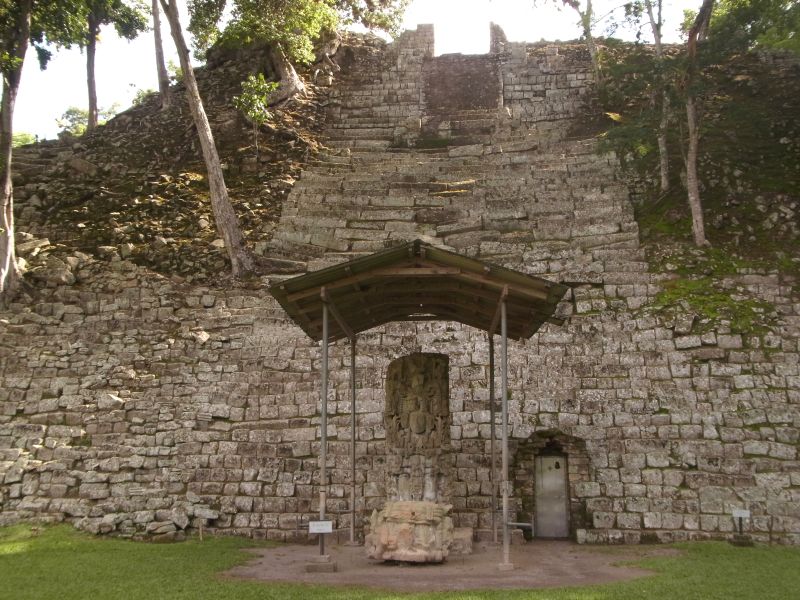 bekannte Herrscher von Copán gedeutet wird, flankiert. Struktur 11 wurde