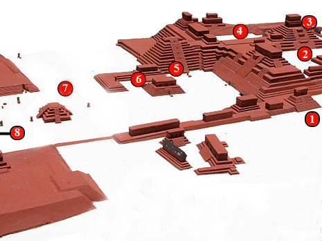 höchsten Teil der Akropolis, flankiert. Die Tempelpyramide wurde
