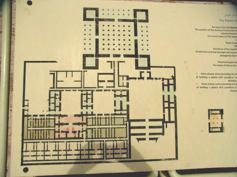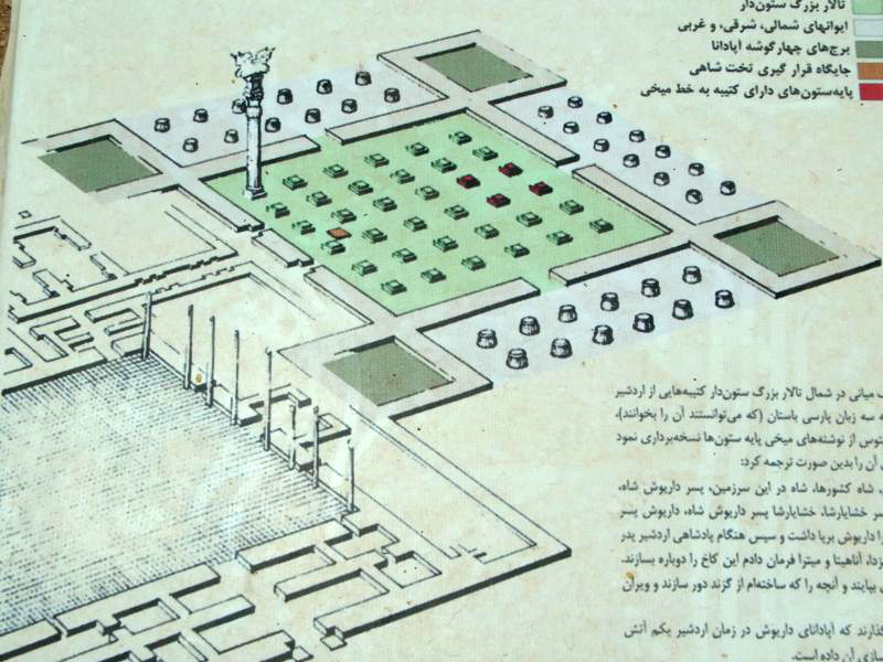 sich der offizielle Teil des Palastes, das 109 x 109 Meter messende Apadana (altpers.: Palast). Sein