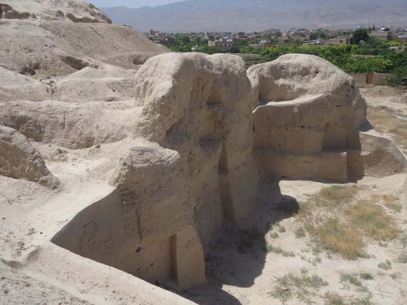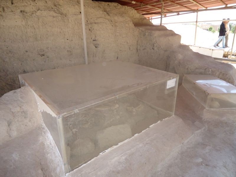 A besteht aus den Resten primitiver Stampflehmhütten aus