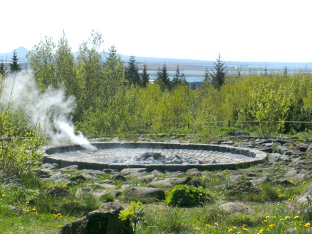 befestigter Geysir (Foto links).