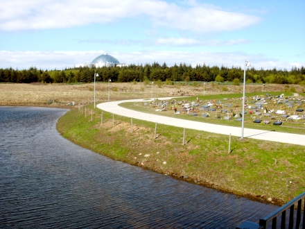 Friedhofsgelände mit einer Insel und einer Brücke angelegt