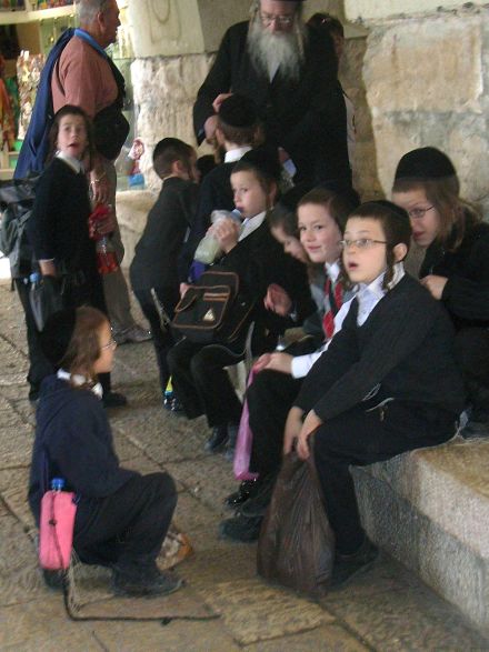 und orthodoxer jüdischer Nachwuchs (rechts)