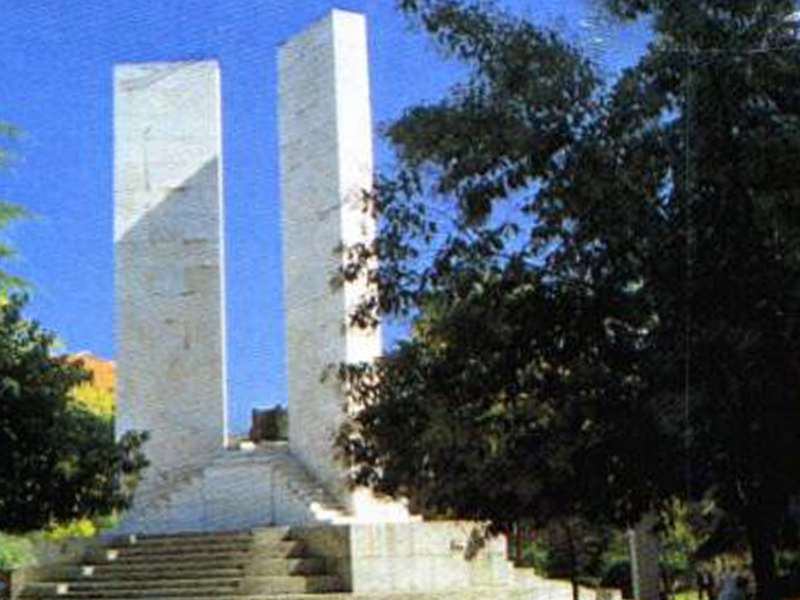 (Foto links). Das "Monumento ai caduti in guerra" auf der Piazza della