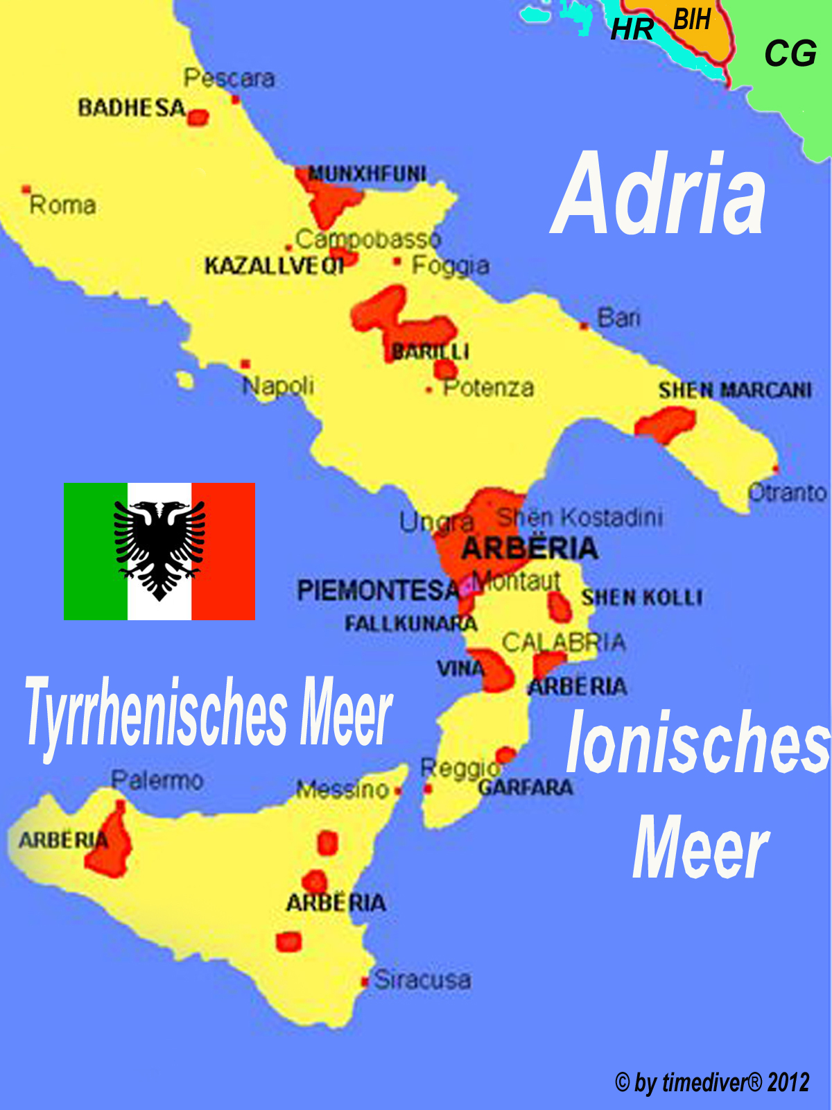 Gebieten in denen die albanische Minderheit ansässig wurde, gibt
