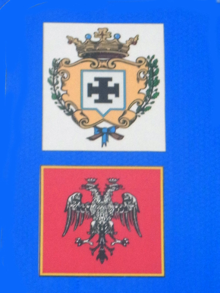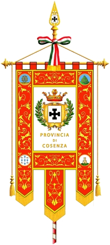 dem Wappen der Comune di Cosenza mit dem schwarzen Kruckenkreuz