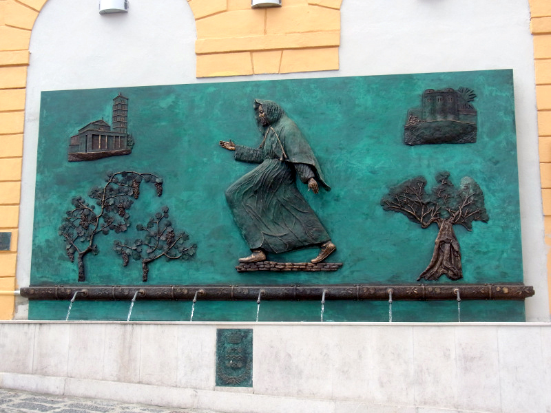unmittelbarer Nähe eines Brunnens mit frommen Motiven....