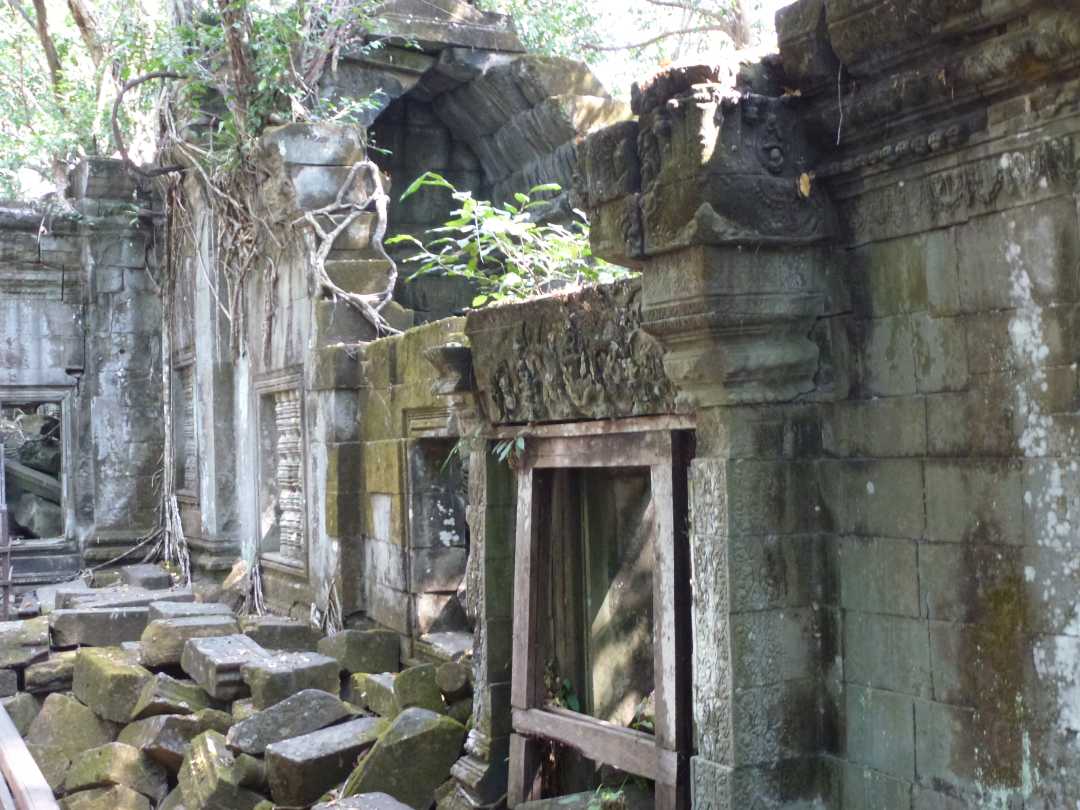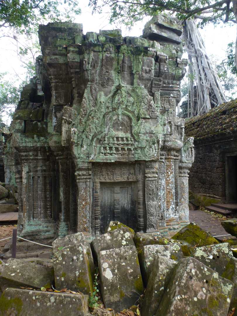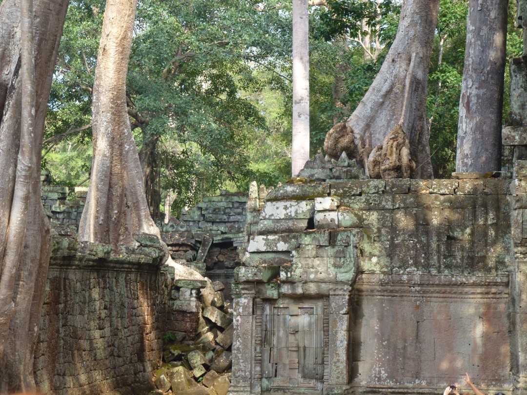 fiel auf Ta Prohm. Die Vegetation und die herabgefallenen Mauersteine