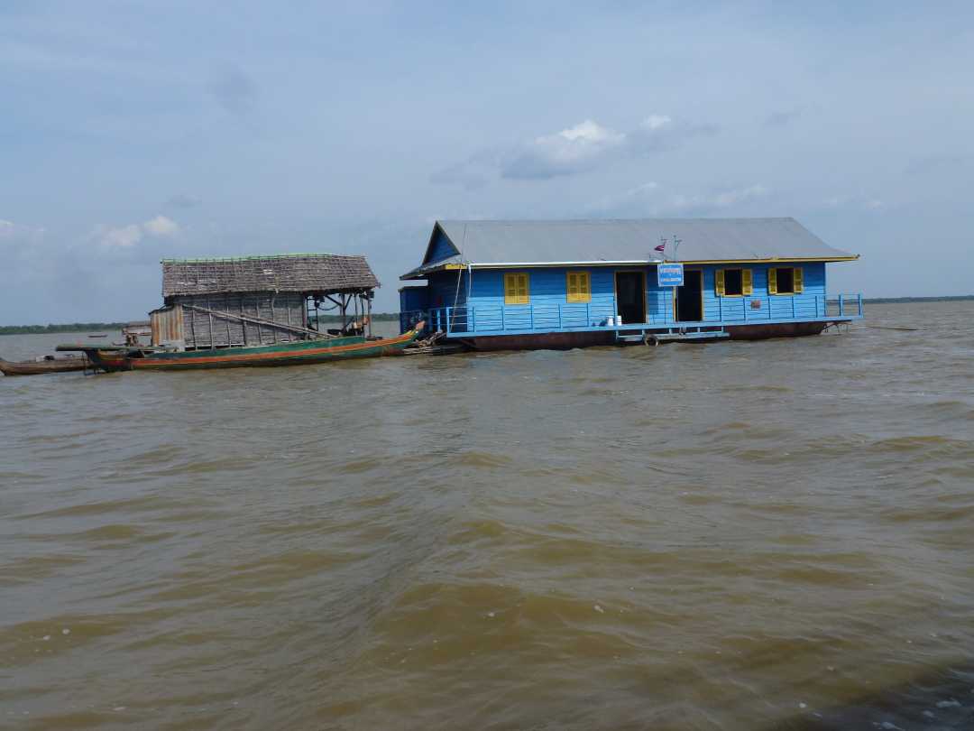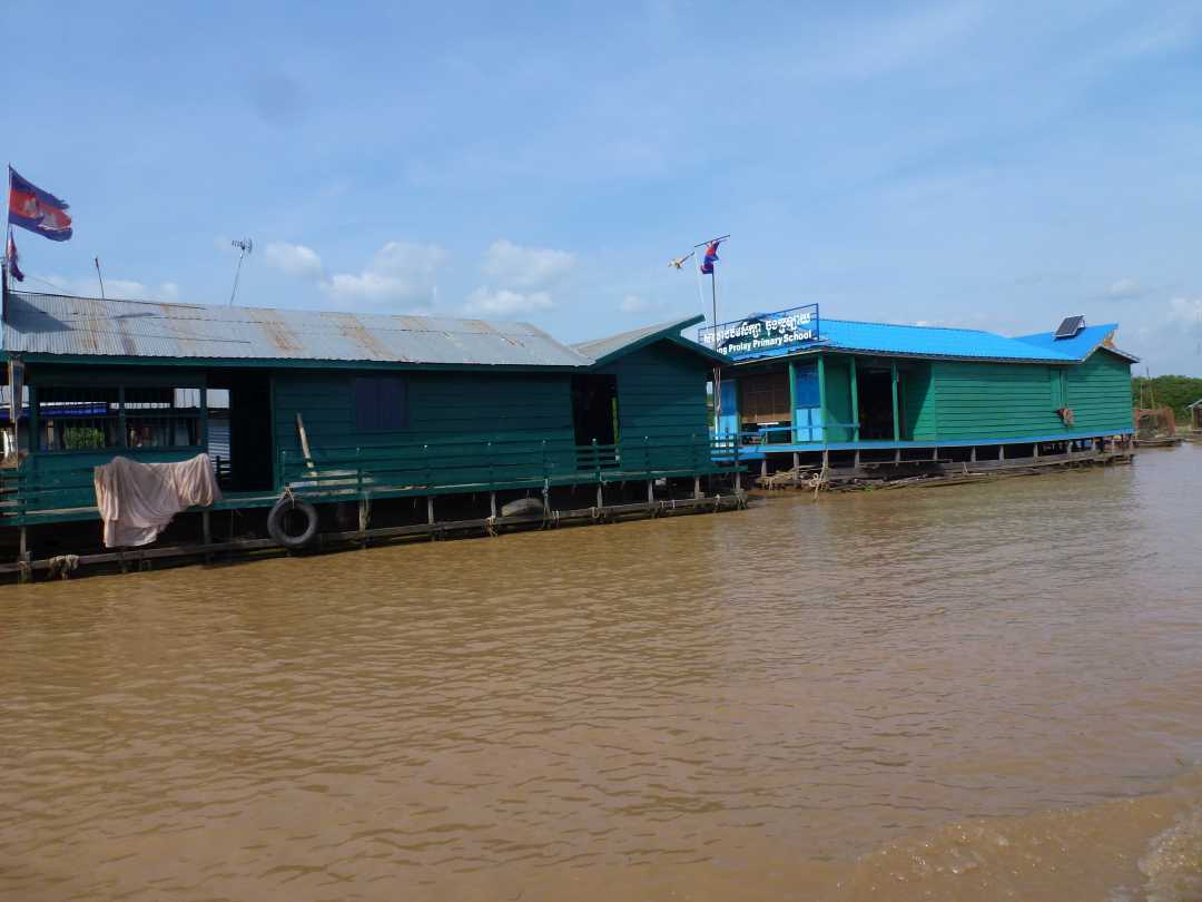 (Fotos oben und rechts) und eine Schule auf dem Tonle Sap (Foto rechts).