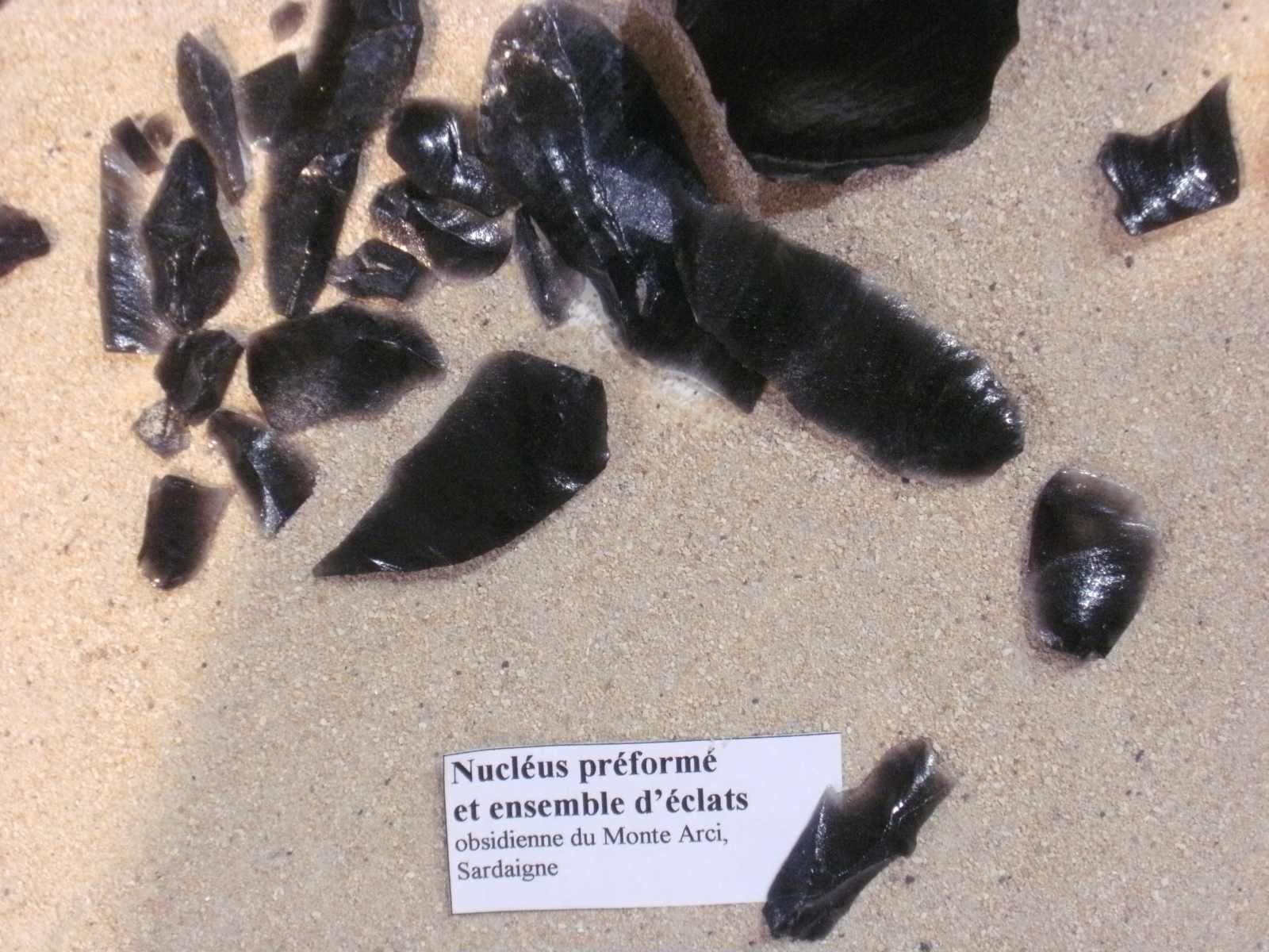 Gesteinsglas (Foto links). Neolithisches Gerätschaften