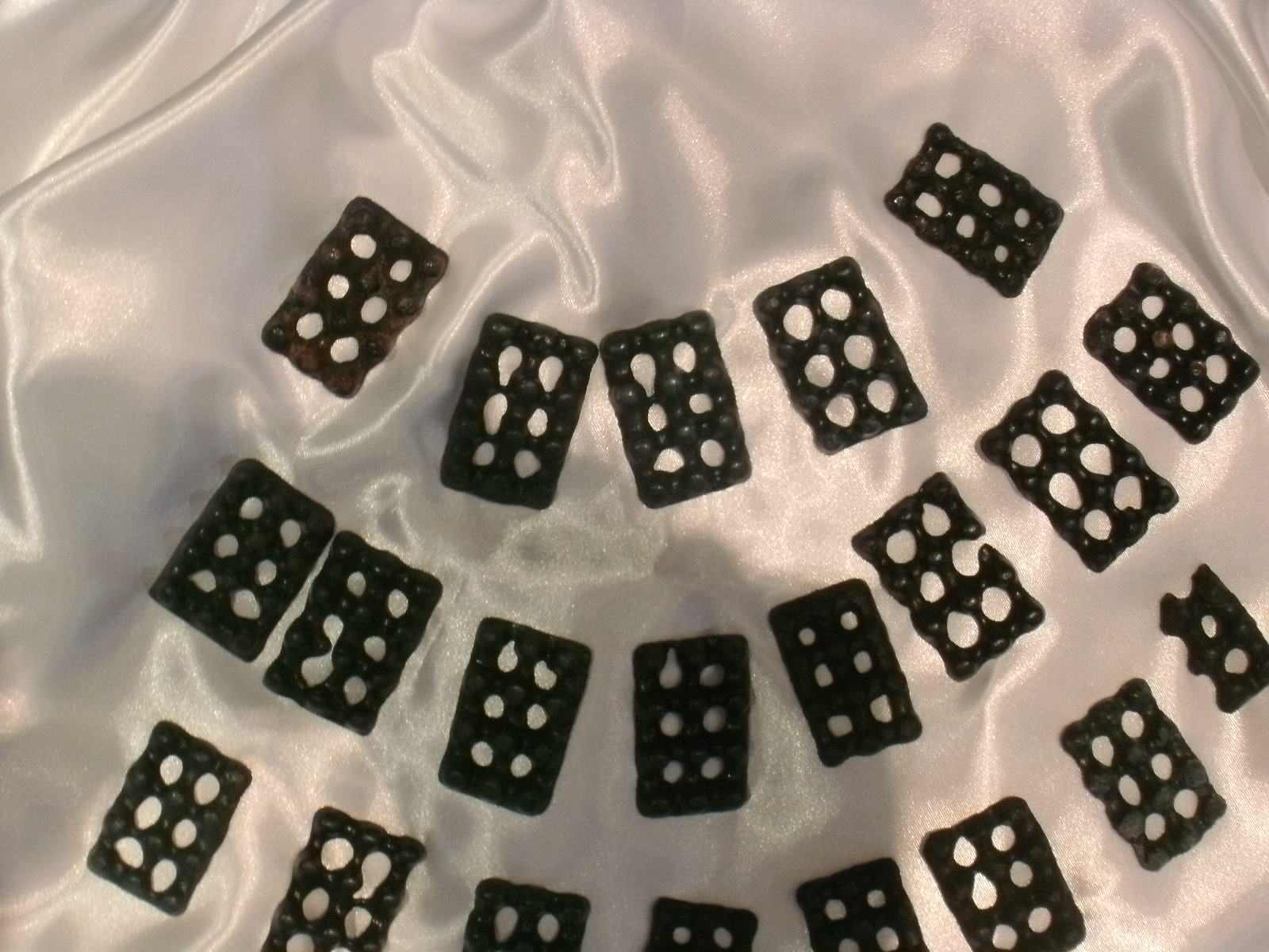 drei, aus Knochen gefertigte Teile (rechtes Foto): Schrankverzierung (1),