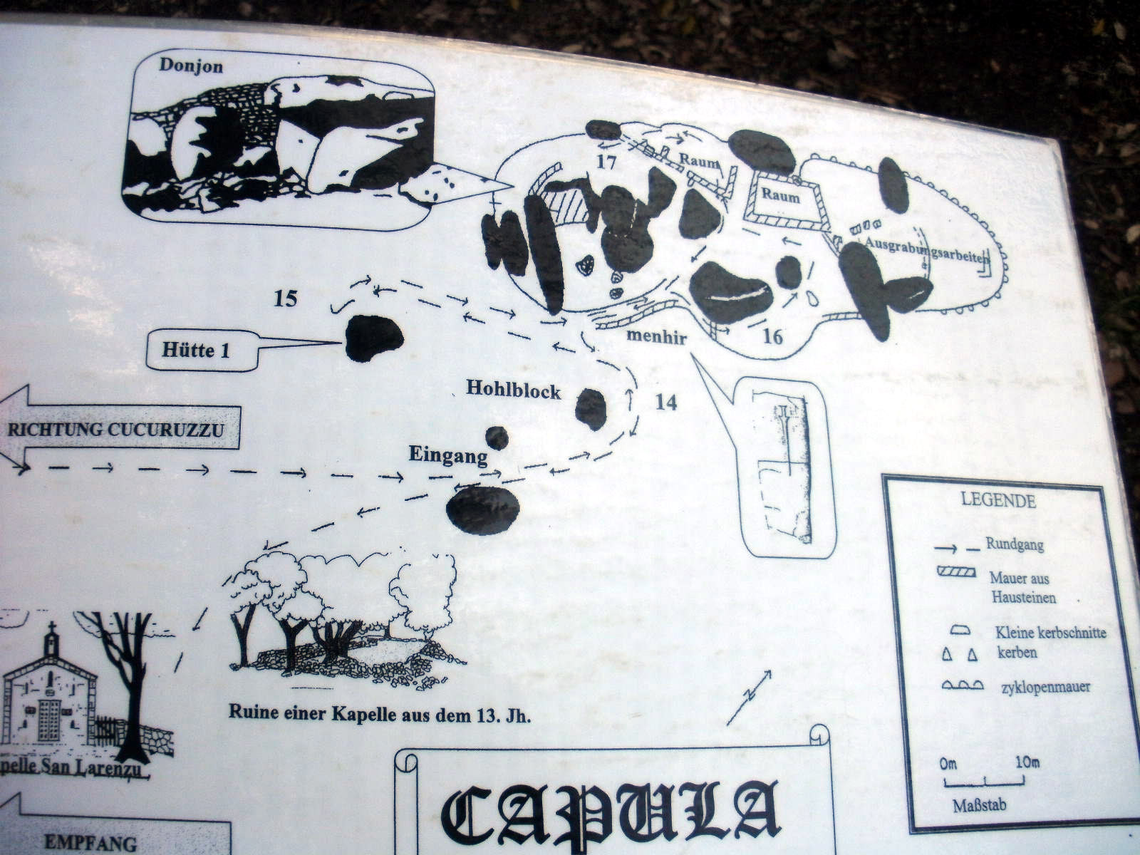 in das Castellu die Capula, der von Mauern verdeckt wird (Foto rechts),