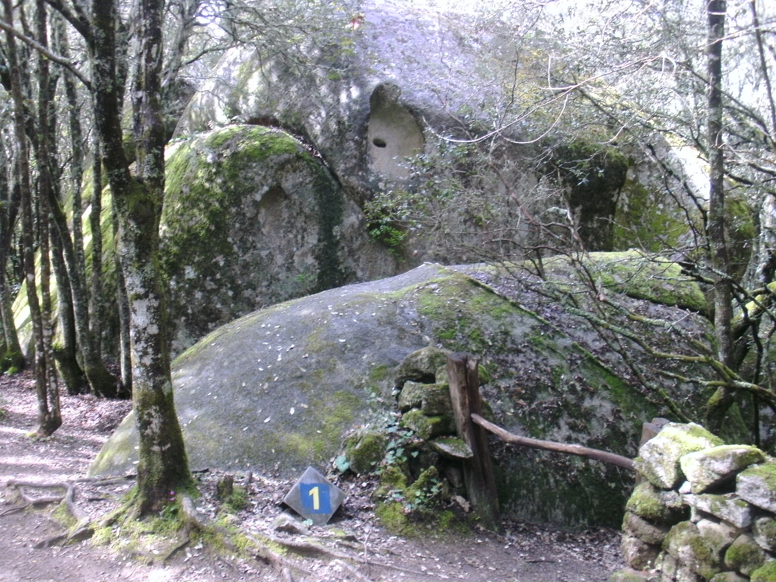 wird von Felsblöcken gesäumt, von denen einige Tafoni vorweisen.