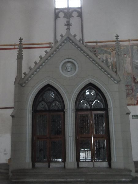 der Innenfassade des Vorhauses (Foto links) wurde auch die Kanzel im