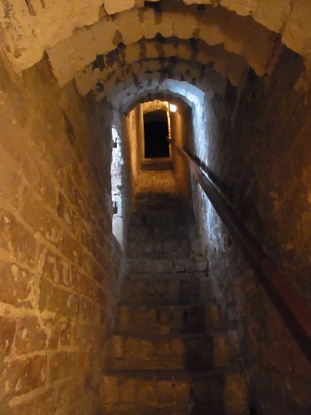 Ein enger Treppengang führt ins einstige Wohngeschoss der Burg