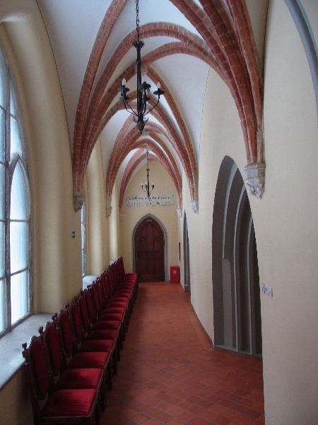 Dormitorium (Foto links) führt der 55 Meter lange Gang, der heute