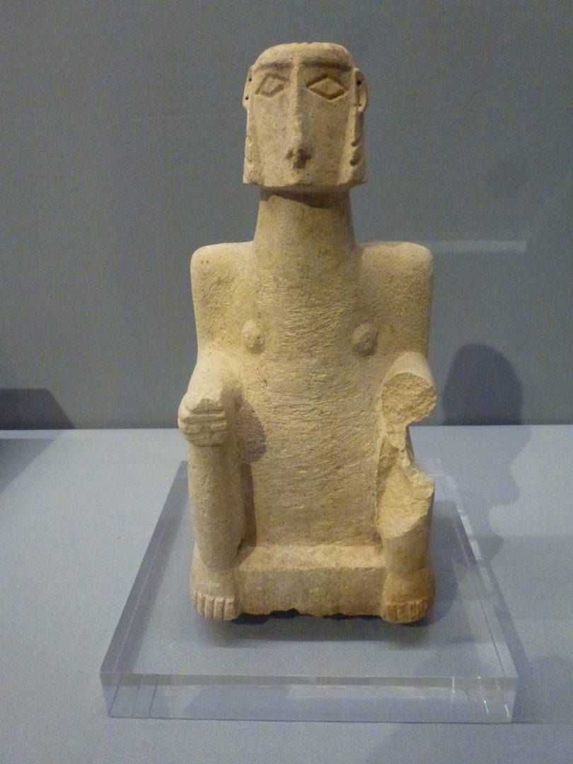 einer sitzenden Frau, Jemen, 6.- 7. Jahrhundert v. Chr. (Foto links)