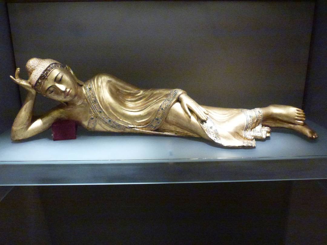 Liegender Buddha, Myanmar, 18. Jahrhundert (Foto rechts)