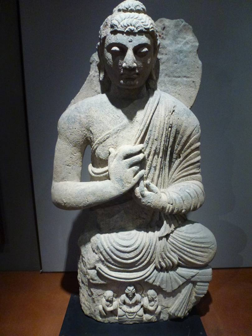 Sitzender Buddha in Dharmacakramudra, Gandhara, Pakistan, 2 Jahrhundert