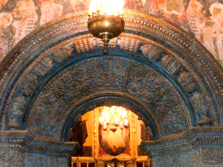 bronzenen Ikonostase im Hauptraum gehören Ikonen aus der Zeit um 1405,