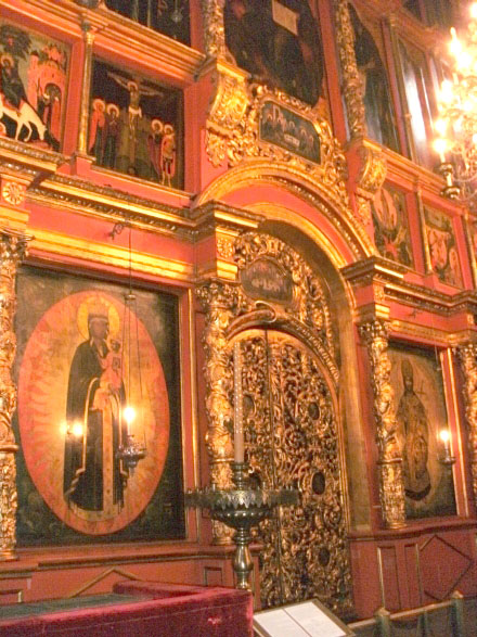 Васи́льевич Гро́зный (1530 - 1584) befindet sich hinter der Ikonostase