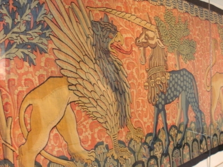 Ein Wandfresko mit zwei Fabeltieren (Greif