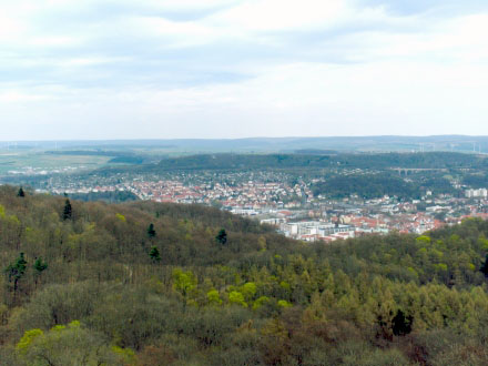Blick auf die 200 Meter tiefer liegende Stadt Eisenach.