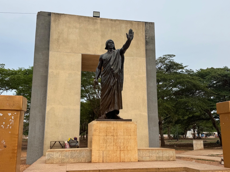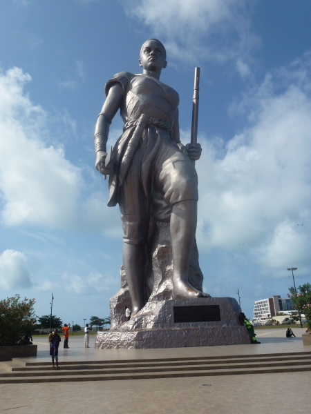die den Dahomey-Amazonen gewidmet ist. Eine Metallstruktur, die mit Bronze