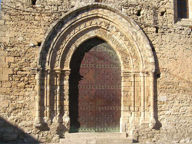 (Foto links). Das arabisch-normannische Portal mit Zickzackbändern