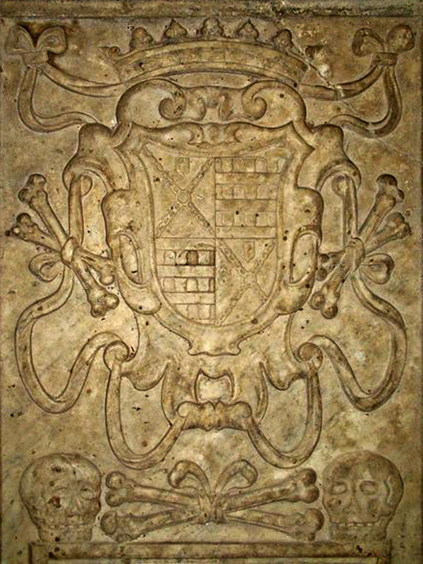 In der verwaisten Kirche erinnerte das Famlienwappen an die Sippe der Alberti