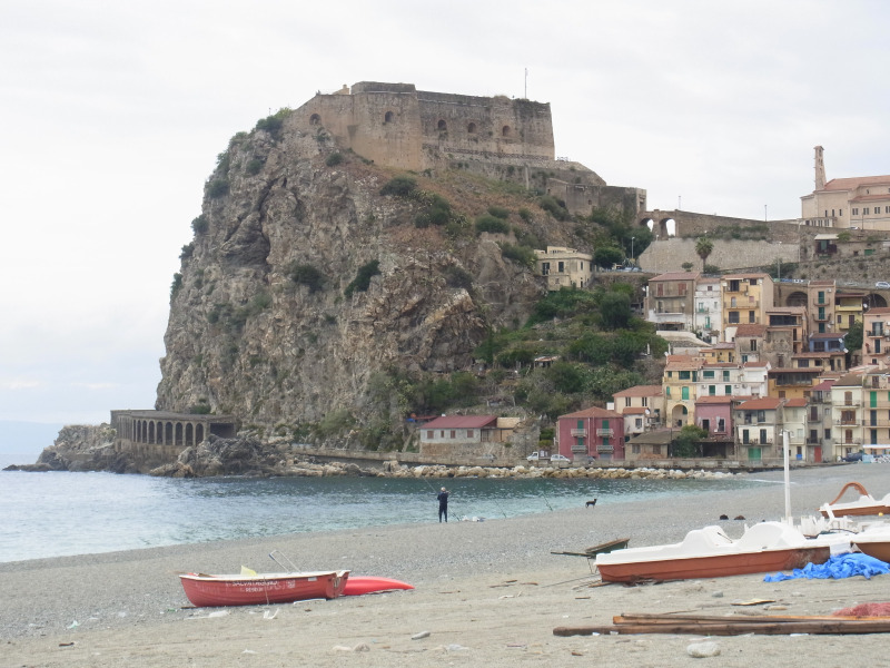 Felsen (Foto links) liegende Ort Scilla, das